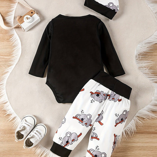 Baby Koala Long-sleeved Romper - Pants + Hat -Three-piece Set