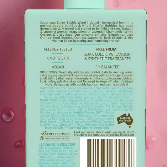 Jack 'n' Jills Blissful Bubbles Baby Safe Bubble Bath with Bunny Bubble Wand