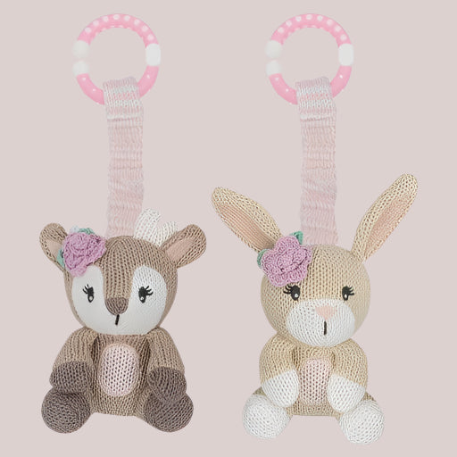Meet your baby's new travel companions – Ava the Fawn and Amelia the Bunny! These delightful stroller friends bring smiles and entertainment to every journey with their gentle jingling rattle and super-soft 100% cotton knit design.