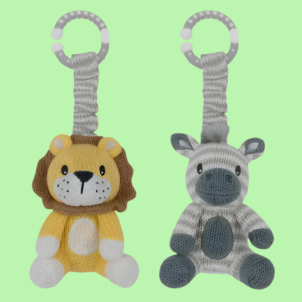 Transform your strolls into magical adventures with our adorable stroller toys! Made from soft cotton knit and designed to match our Noah collection, they easily attach to any stroller/pram hood, bumper bar, play-gym, or car seat.