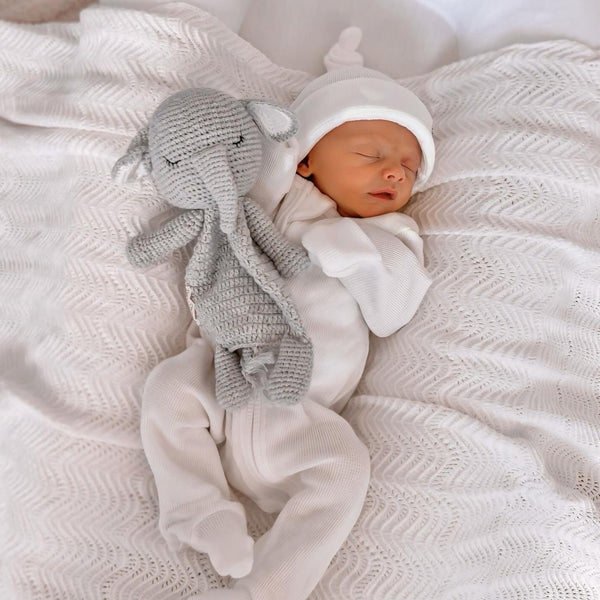 Our Handmade Cuddle Me Crochet Elephant is the perfect comforter for your child, providing constant companionship and comfort. It's designed to be suitable from birth and can be used as a prop for a birth announcement photo or as a thoughtful gift for a newborn. Order now to bring endless joy and comfort to your little one!