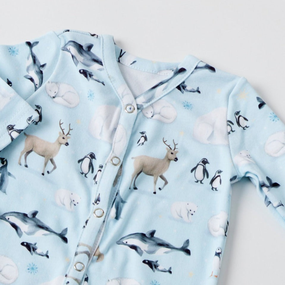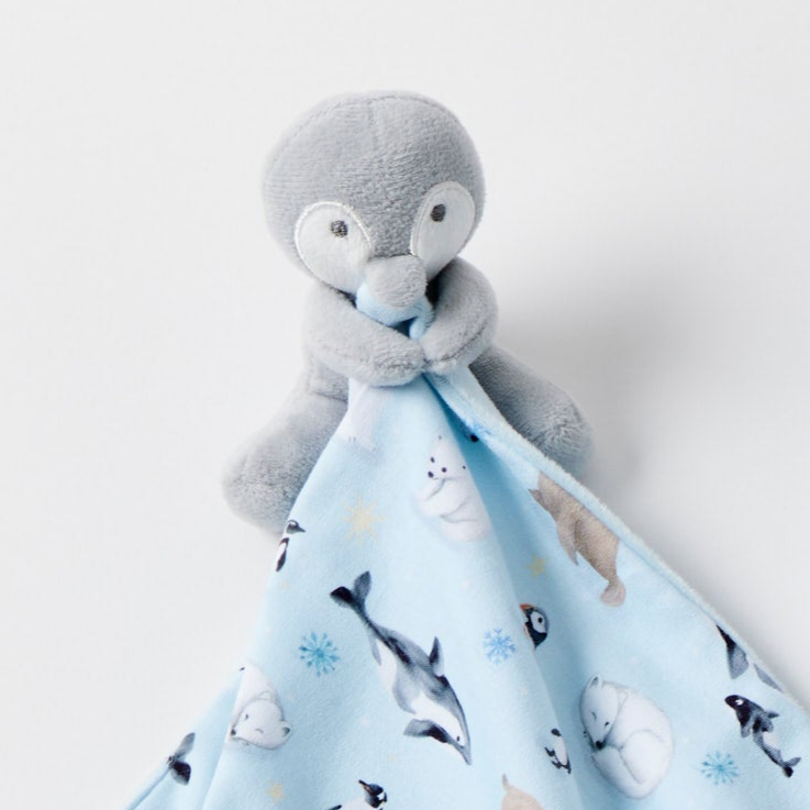 Make gift-giving a breeze with the Aurora Romper and Comforter set by Jiggle and Giggle. This stylish set includes a cozy cotton jersey romper featuring a one-of-a-kind Arctic print, sure to capture your little one's imagination. Plus, the matching 100% cotton jersey comforter has a luxurious poly velour backing and a delightful penguin design. It all comes beautifully packaged in a gift box, perfect for presenting to your loved ones.
