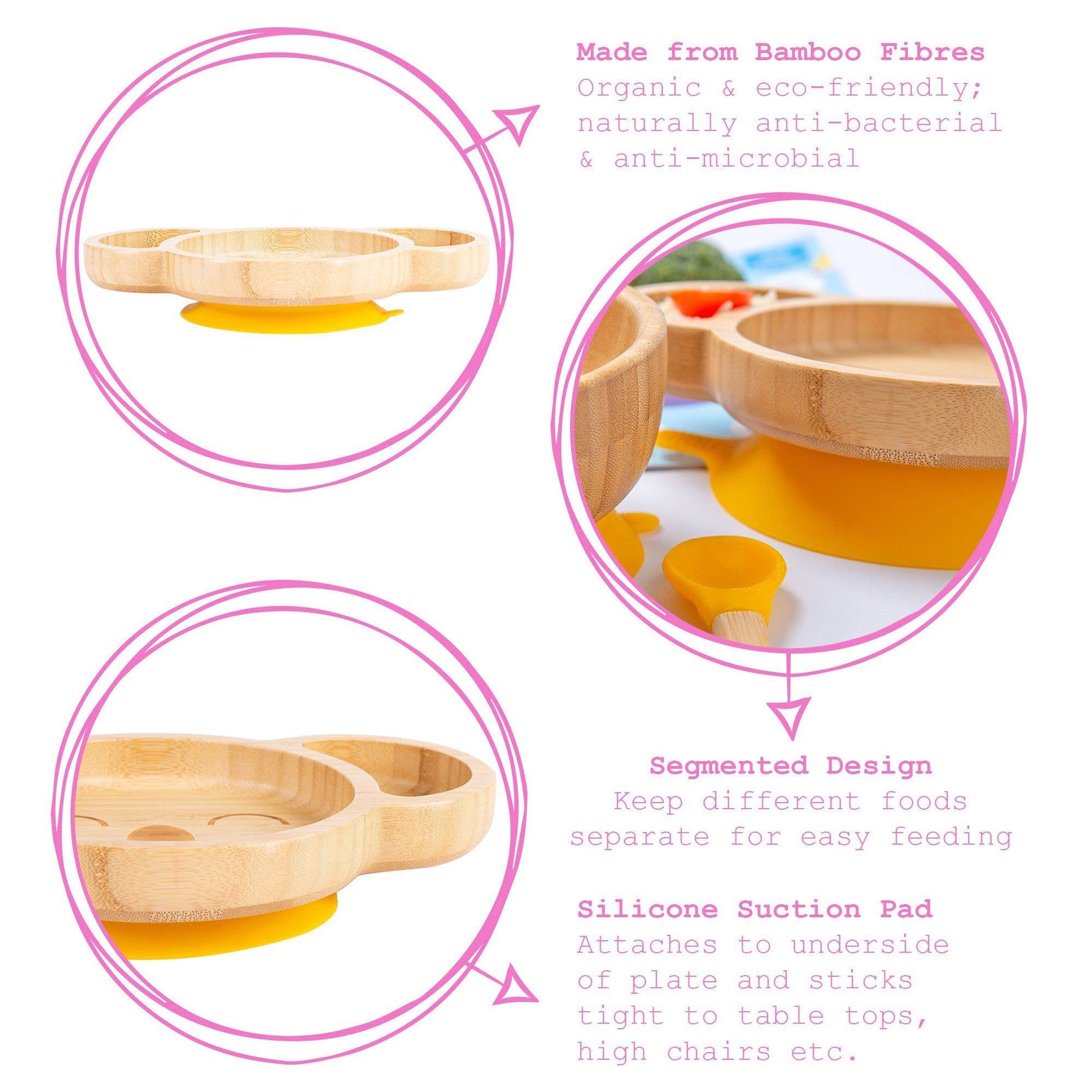 Say goodbye to mealtime chaos! Our adorable Koala-shaped bamboo plates stay right where they belong thanks to clever suction technology that keeps food on the table (and not on the floor!).