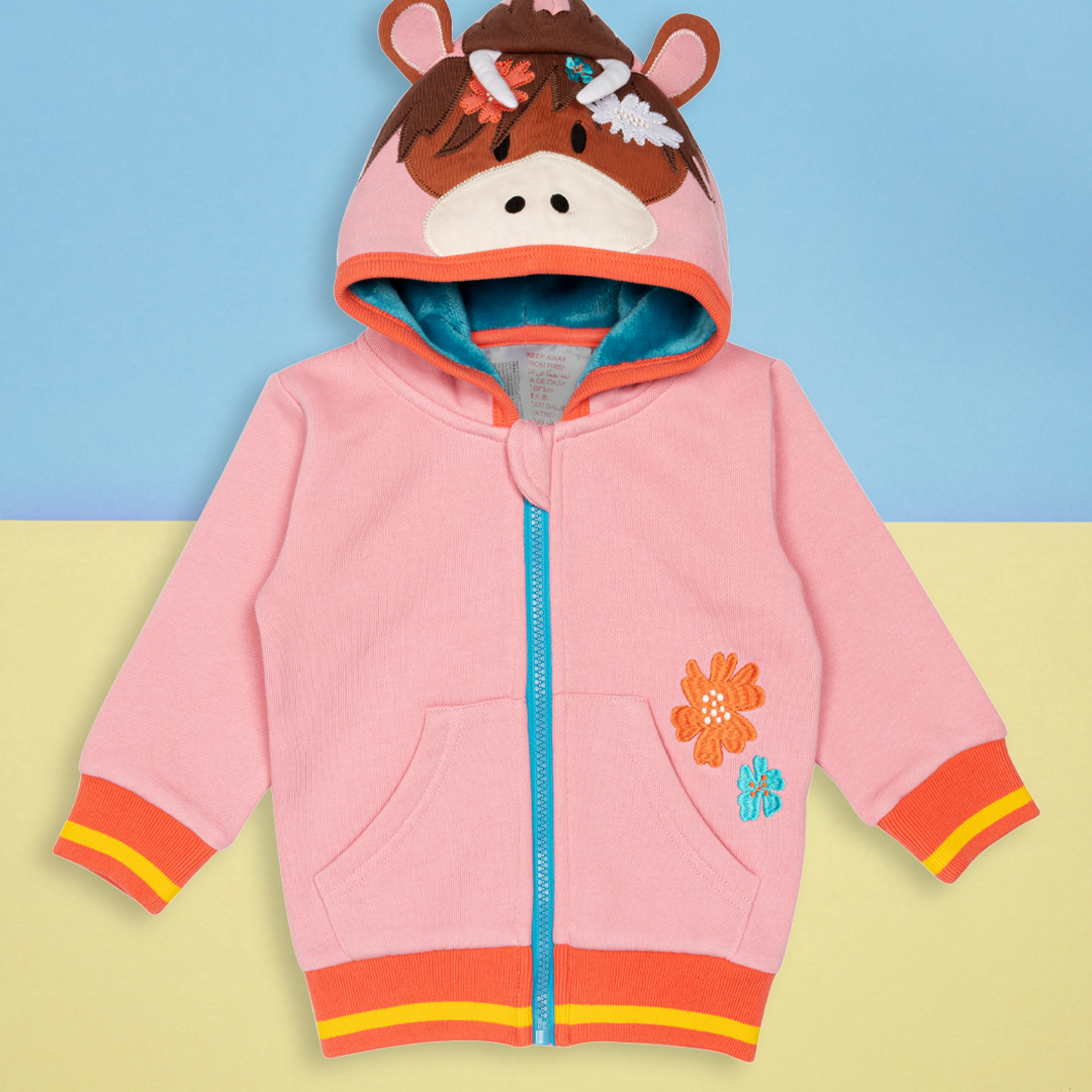 Meet adorable Bonnie, our newest Highland Cow friend who's ready to join your little one on every adventure! This charming pink hoodie features Bonnie's sweet cow face complete with perky ears and tiny horns - perfect for little ones who love to stand out and embrace their wild side.