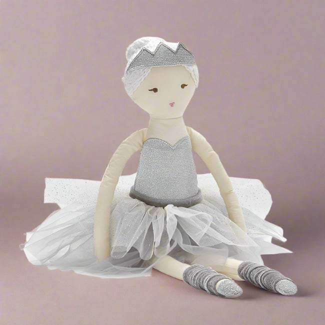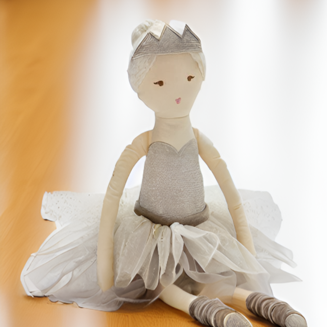 Meet Grace the Ballerina Rag Doll, standing tall at 57cm. With sweet and friendly embroidered facial features, she's meticulously crafted to withstand play while maintaining her timeless charm. Grace isn't just a toy; she's a cherished friend who will accompany your child on countless adventures, fostering imagination and joy along the way. Bring the magic of the ballet into your child's world with Grace the Ballerina Rag Doll.