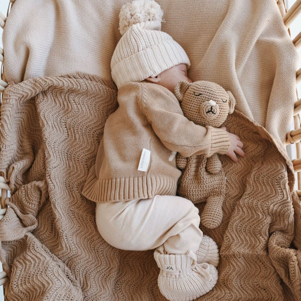 An absolute essential for any baby's wardrobe! Our Textured Knit Booties are a must-have accessory. Crafted from the softest cotton, they keep your baby's feet cozy while allowing them to breathe. Toss them in your nappy bag, and they'll be ready for that afternoon chill. Plus, with an adjustable drawstring, these booties grow with your baby, ensuring maximum wear. They also make for a cherished heirloom and are indispensable when packing your hospital bag.