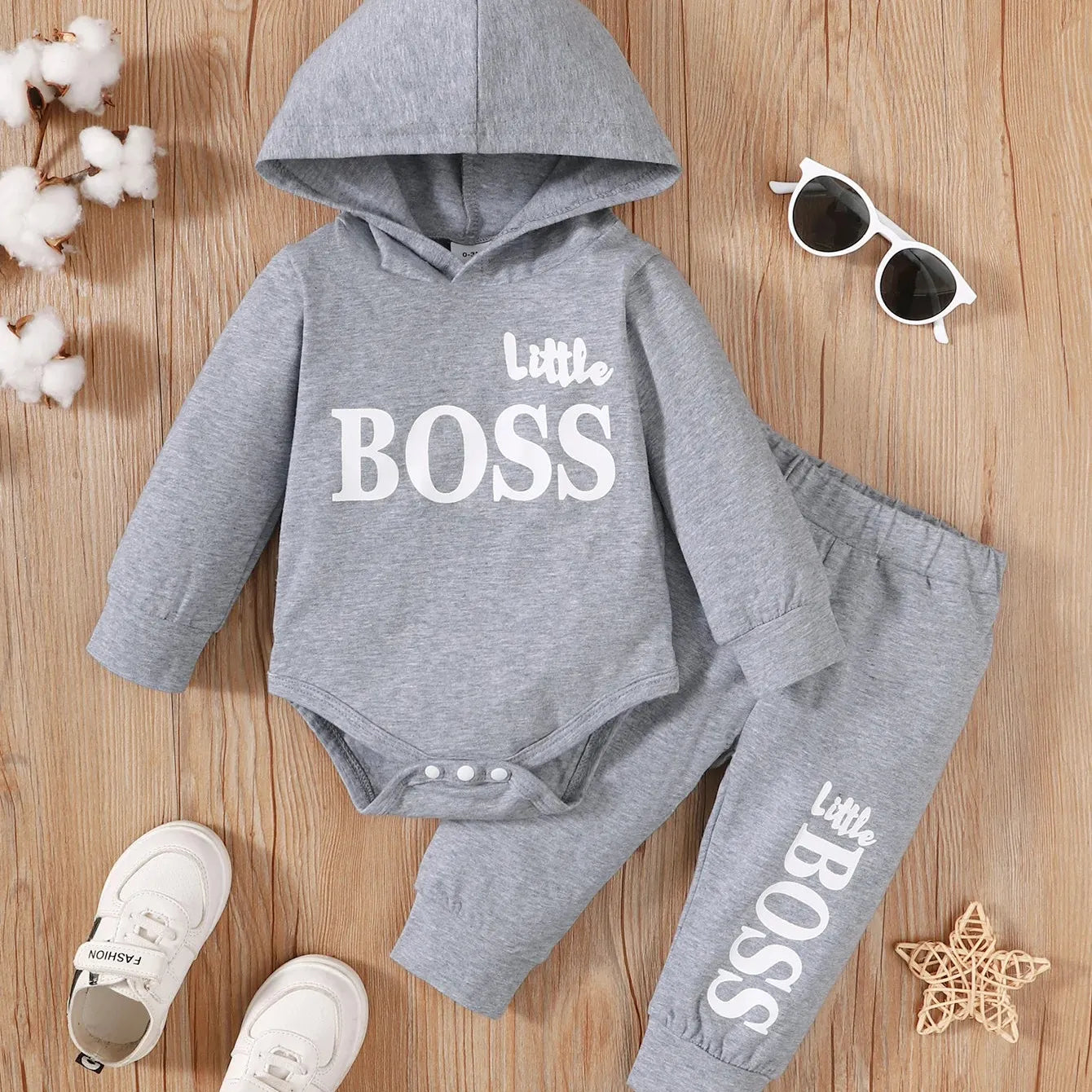 Light Winter Infant Baby Boy Long Sleeves Cotton Hooded Little Boss 2 Piece Set
